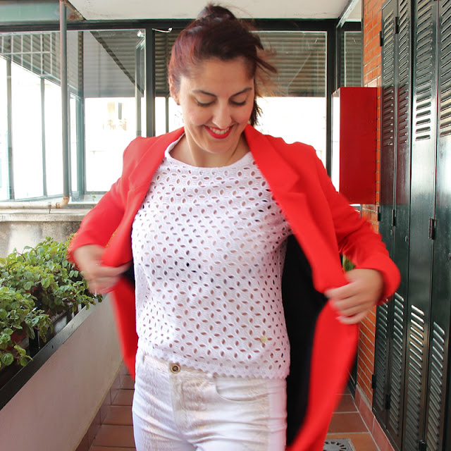 Es un conjunto para lucir con o sin americana, de las dos maneras queda alucinante para mi gusto. Yo lo he combinado con zapatos del mismo tono de rojo y cartera de mano que incluye los colores de mi look.