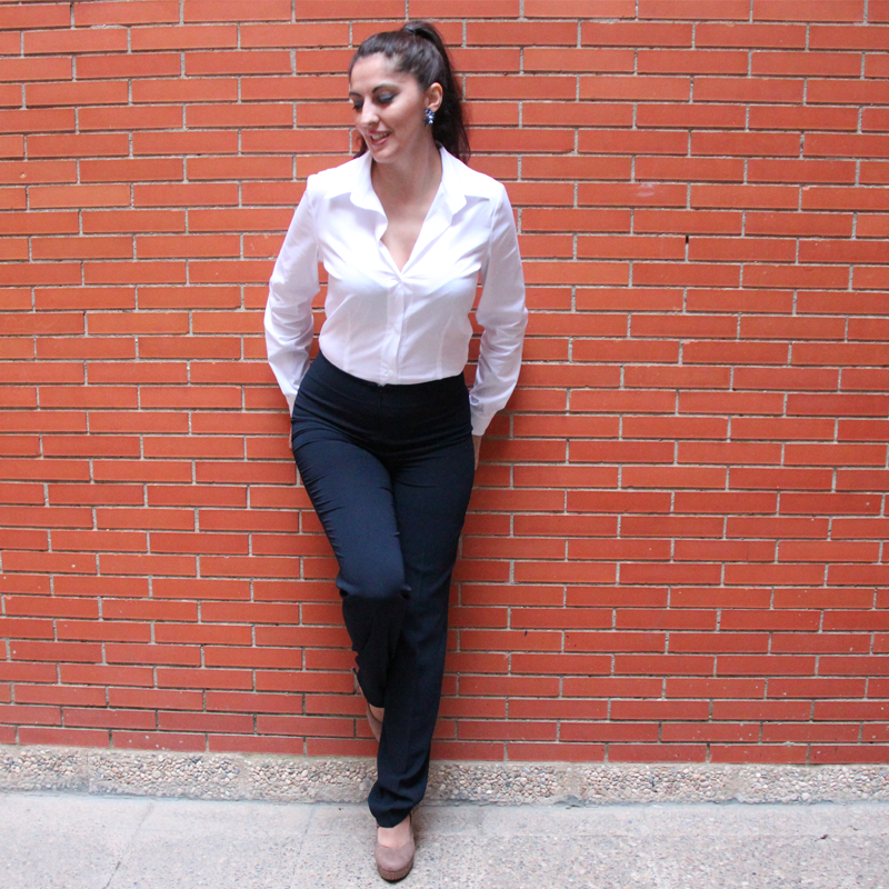 La camisa es el modelo DIRA, con doble botonadura en los puños y pinzas en los laterales, tanto por delante como por detrás. Esto hace que quede ceñida a la cintura para no perder ni un ápice de feminidad ¡Es la típica blusa blanca que siempre queda bien!